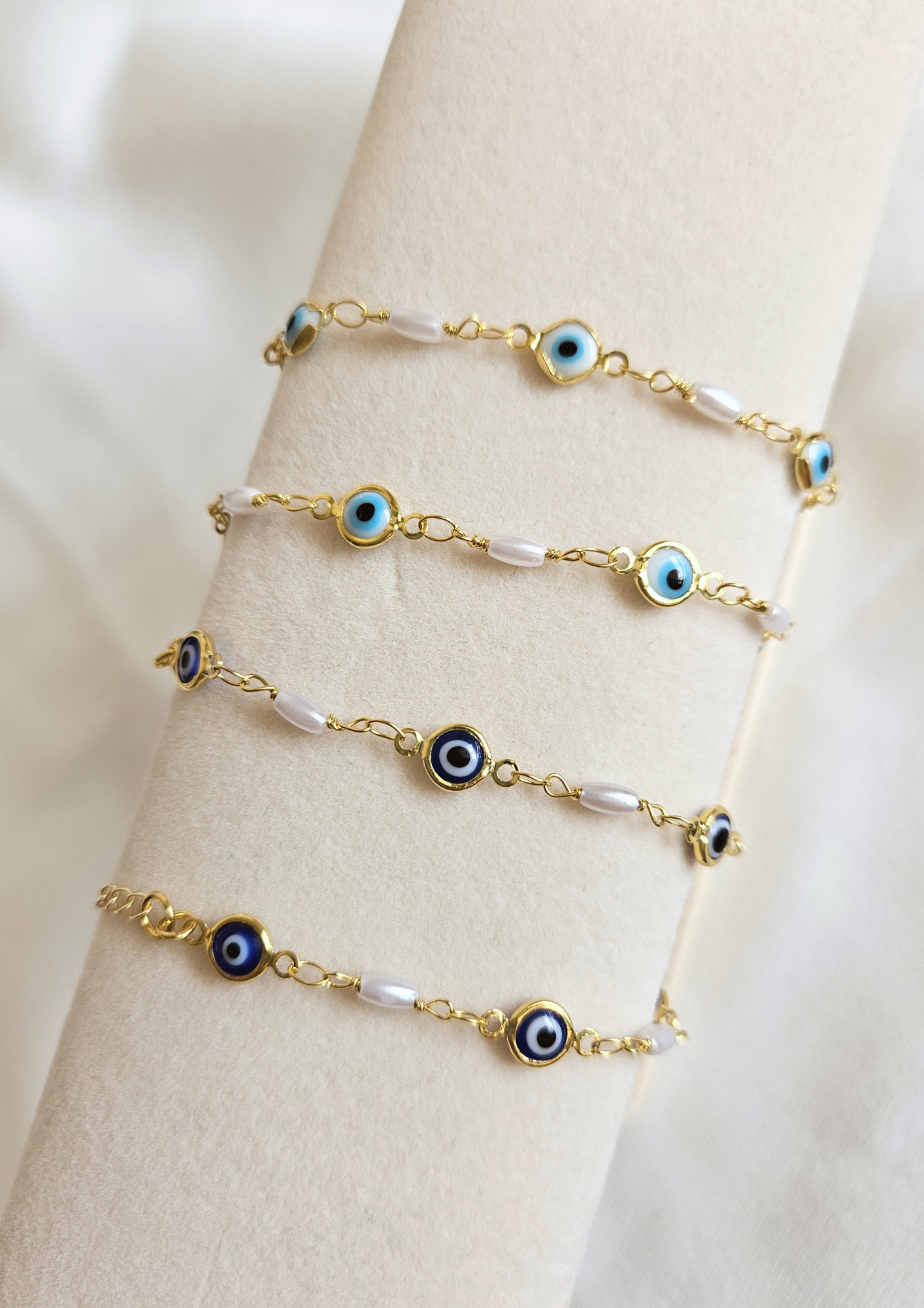 Protégete con estilo con nuestra Gargantilla de perlas y amuleto de "El Mal de Ojo". Esta pieza se destaca como un punto focal cautivador que añade un toque intrigante a cualquier atuendo y al mismo tiempo actúa como un talismán de protección y positividad.